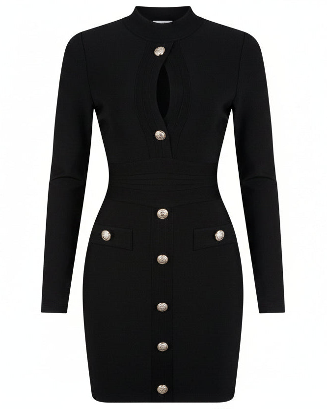 Vestido de vendaje ahuecado de manga larga