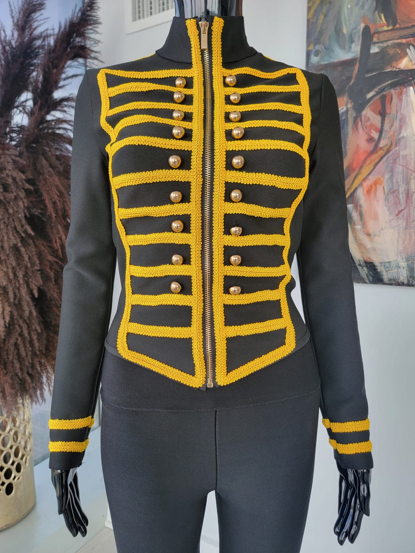 - Other Feature(s): Contouring features, gold accents/studs and yellow stitching. Wear it as a jacket or a top.